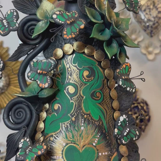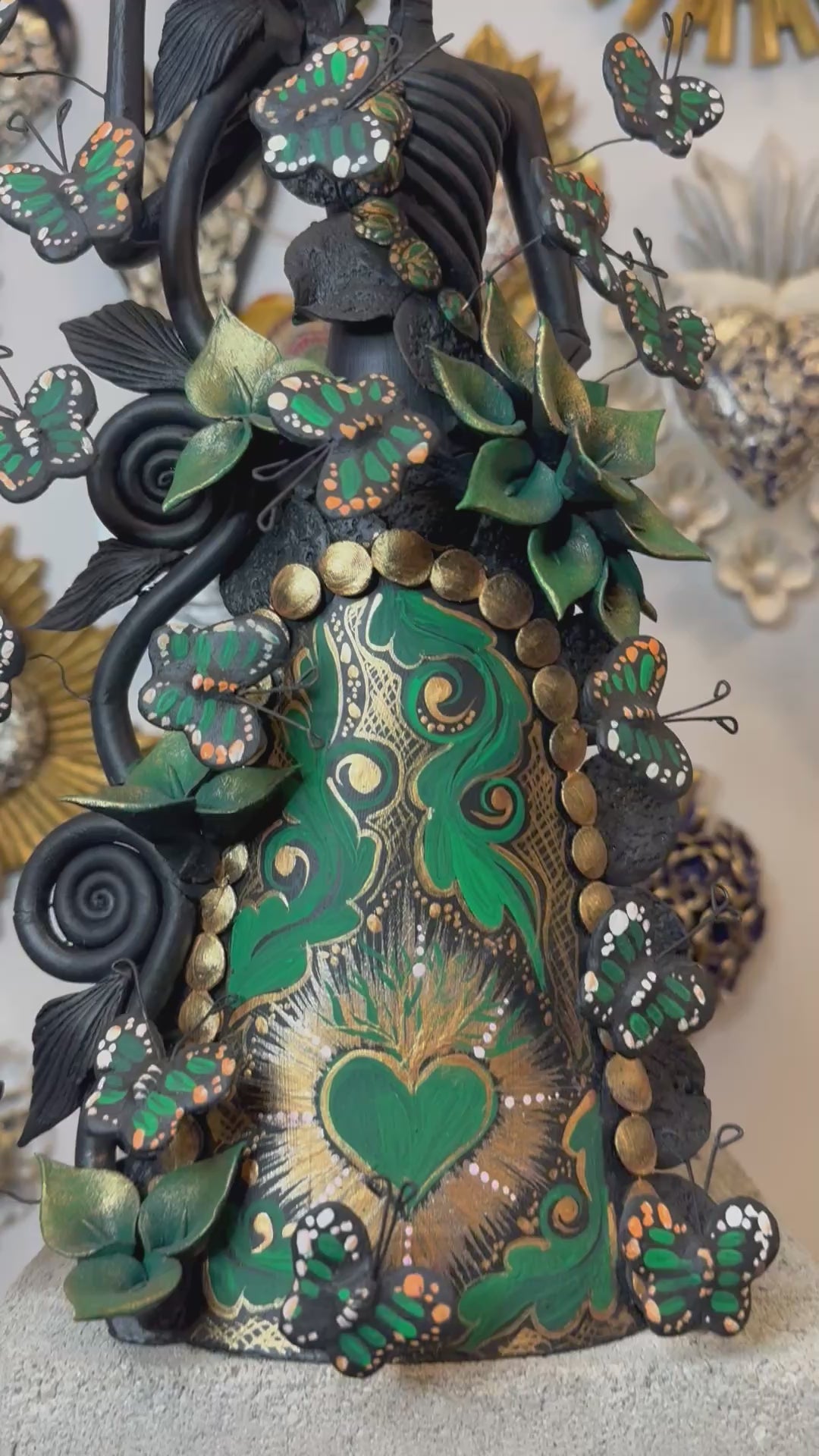 Expertly handcrafted, the Large Monarcha Butterfly Catrina is a stunning piece of art. With delicate floating butterflies, this Catrina figure adds a touch of elegance and beauty to any space. Made with precision and attention to detail, it's a unique addition to your collection.