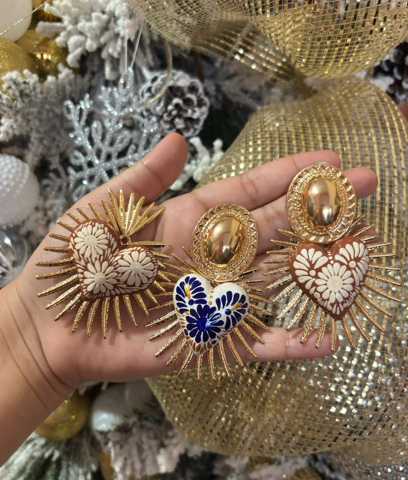 Taking a tradicional look of Talavera and barro and brining it to our jewelry. Very light weight wooden heart earrings.
